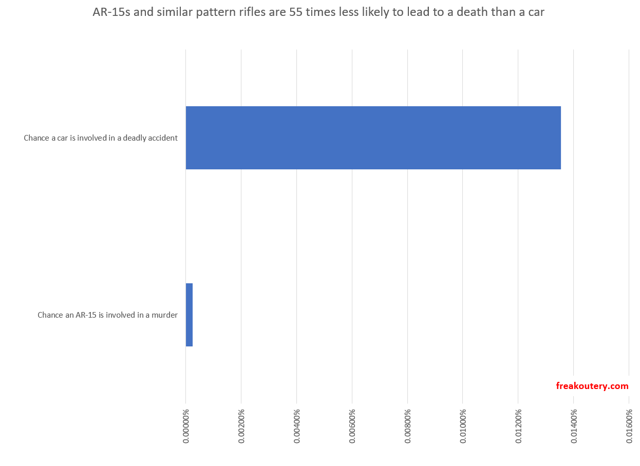 To be fair, it may be a better comparison between guns and cars to consider miles driven per death. And then rounds fired, per death.