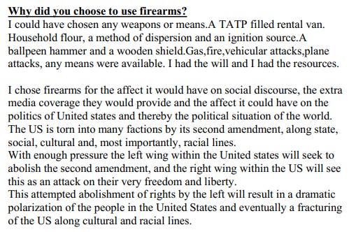 At 9 AM the shooter goes to the post office, mails out Ye Olde Manifesto of Crazy Garbage.