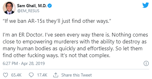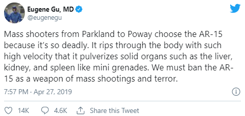 These things are getting a lot of traffic, and they’re tremendously flawed, but the doctors don’t see why they’re flawed because a doctor’s view into a mass shooting is one patient at a time. Doctors aren’t thinking about the framework of the engagement or the total amount of damage someone can cause with different firearms. Let’s first examine the doctor’s perspective, which is a valuable one, if too narrow to fully understand the problem.