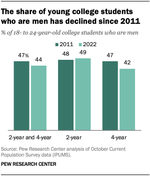 The share of men attending colleges by ratio has plummeted over the last decade.