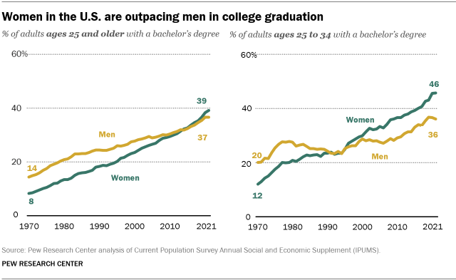 Is the rising female dominance of academia due to the country being spammed with student loans? Or the rise of humanities degrees with questionable ROI? Or disaffected males checking out of a system dominated by women at the grade school level? Or the disproportionate amount of “female only” scholarships and leg-up programs? Or that video games and weed in 2024 are orders of magnitude better than they were in the 90s? I do not know, I just know the scoreboard.
