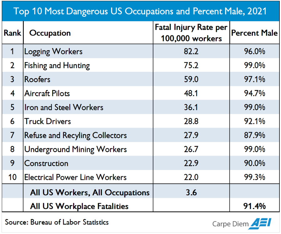 Almost no women work in high risk jobs, which leads to a huge disparity in workplace deaths.