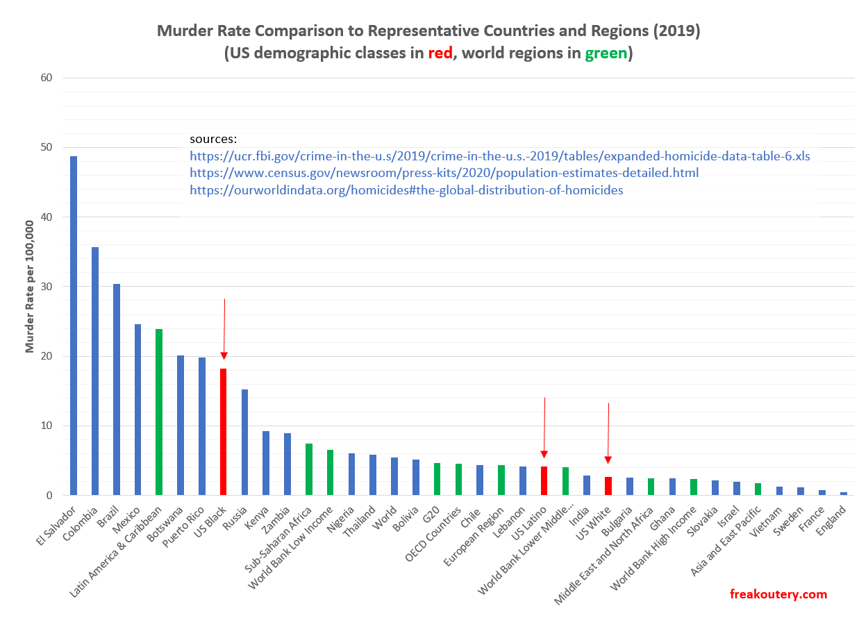 The U.S. white murder rate is about the same as the World Bank high income nations and the U.S. black murder rate is double that of sub-Saharan Africa. That doesn’t tell you the cause, but it does tell you where to look. For causes and cures, the same article shows this, among a bevy of other graphs: