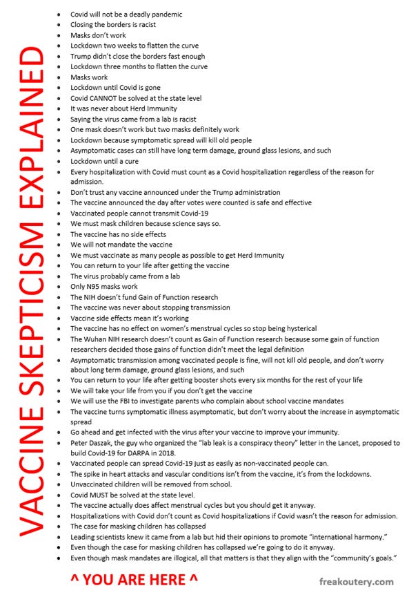 On Rogan, Nawaz rolled out a slate of references for his “military grade psyop” theory, and I do not challenge those references. But these were cherry picked, related specifically to certain policy measures, and do not remotely capture the entire depth and breadth of the true “psyop.” I’ve been maintaining a running score card of the machinations of the Covid Egregore for years on Twitter, and this is the current snapshot on February 23rd, 2022: