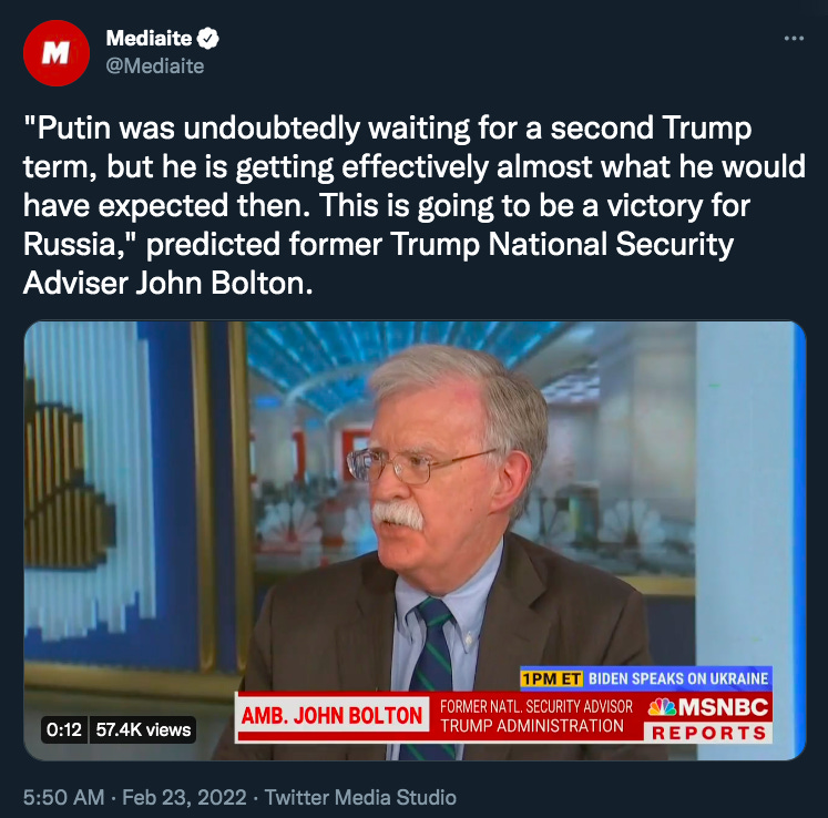 John Bolton is the most curious of the three, because he was in the left’s crosshairs as recently as four years ago. Memory holed. Speak something useful to the egregore and the egregore forgives, because all the egregore wants is for you to feed it clicks.