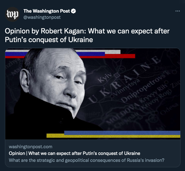 We’ve established that egregores perpetuate not what is true, but what enhances their ability to spread on the internet. We’ve established that human life is not a concern for an egregore, nor is traditional morality. We’ve established that the dominant egregore has pivoted from Covid hysteria into Ukraine hysteria. We’ve established that the dominant egregore was able to convince people to do terrible irrational things in the name of Covid. Now let’s take a quick snapshot of the sensemaking failures that pervade the Ukraine problem as of March 4, 2022 and look at the indications that the dominant egregore may get us all nuked.
