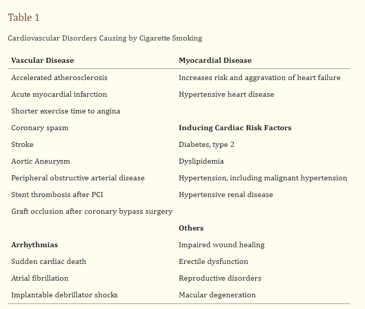Tobacco smoking is also a risk factor for many different aspects of cardiovascular disease.