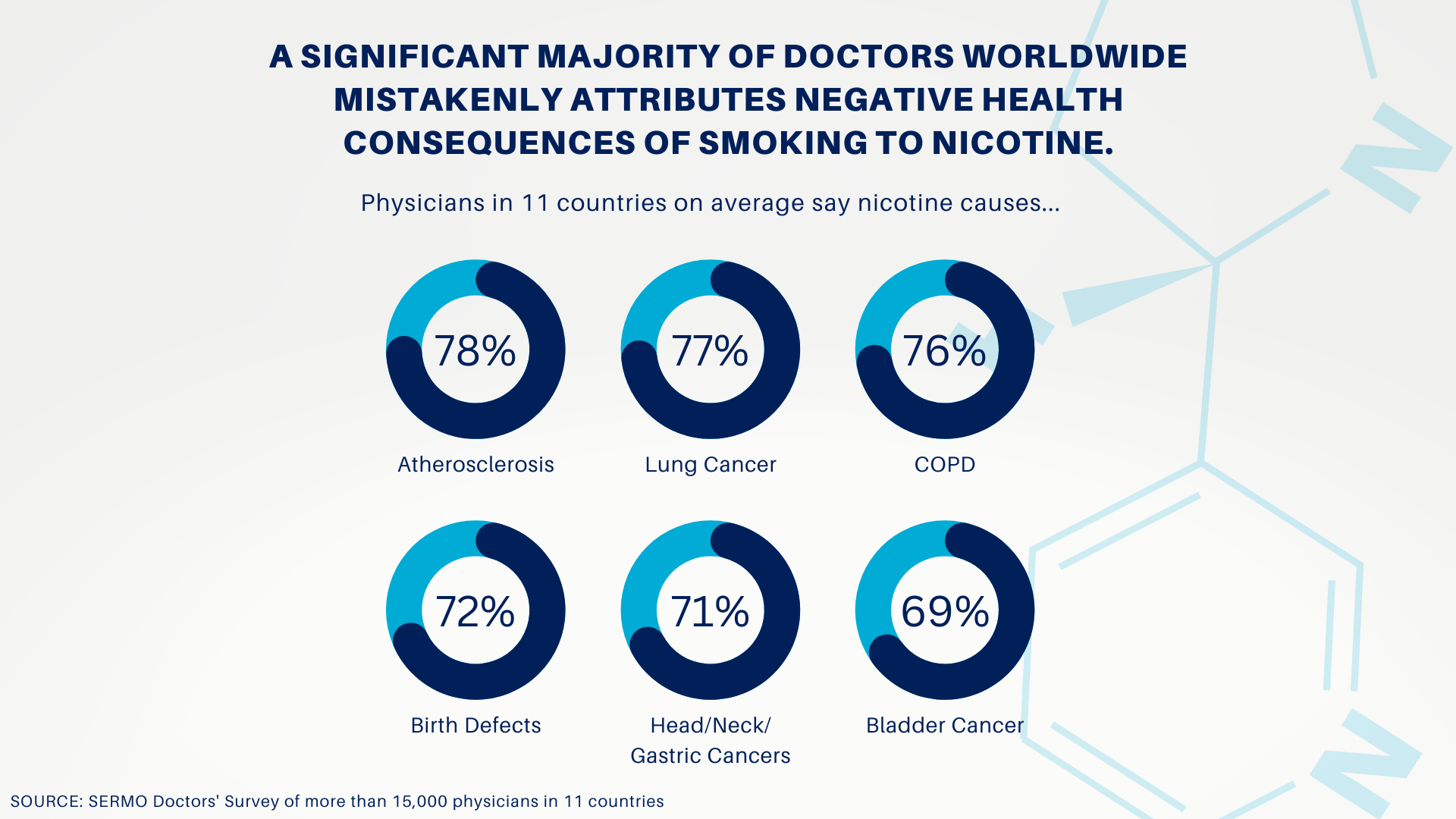 According to recent polling almost 80% of doctors worldwide mistakenly believe that nicotine causes lung cancer: