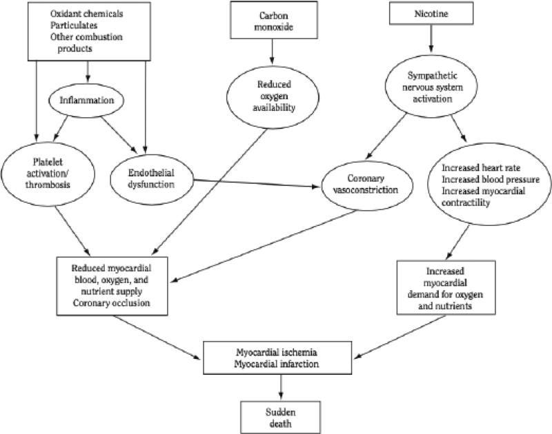 Smokeless tobacco (ST) delivers as much nicotine to the systemic circulation as does cigarette smoking, albeit with slower absorption (21). Worldwide, ST exists in many forms, but the best epidemiologic studies of smokeless tobacco and CV health have been conducted in Sweden, where 25% of men use a form of ST called snus. Non-invasive studies of the extent of atherosclerosis, using carotid intimal wall thickness, found the expected increase among smokers, but no difference between snus users and non-smokers. Case control studies in Sweden have shown no increased risk of myocardial infarction or stroke, but a small and statistically significant increased case fatality rate for both among snus users compared to non-tobacco using controls. In contrast the a large cohort study in the United States and the InterHeart study of smokeless tobacco users in many countries around the world did find an association between ST and myocardial infarction (26, 27). The explanation for discrepant findings may be differences in ST products or other CV risk factors in various regions of the world. A recent Swedish study raises concern about nicotine safety in people with CVD. Among survivors of acute myocardial infarction who were snus users at the time of the event, those who continued to use snus after the event had a significantly higher mortality compared to those who quit.(28) This study suggests that nicotine may be hazardous in patient with CAD. Smokeless tobacco has also been reported to increase in the risk of heart failure, but unlike cigarette smoking does not increase the risk of atrial fibrillation. (29, 30) The American Heart Association reviewed the cardiovascular risk of ST and concluded that while ST most likely conveys less cardiovascular risk than smoking, it still poses some CV risk and recommended against it use in patients with cardiovascular disease. (21)