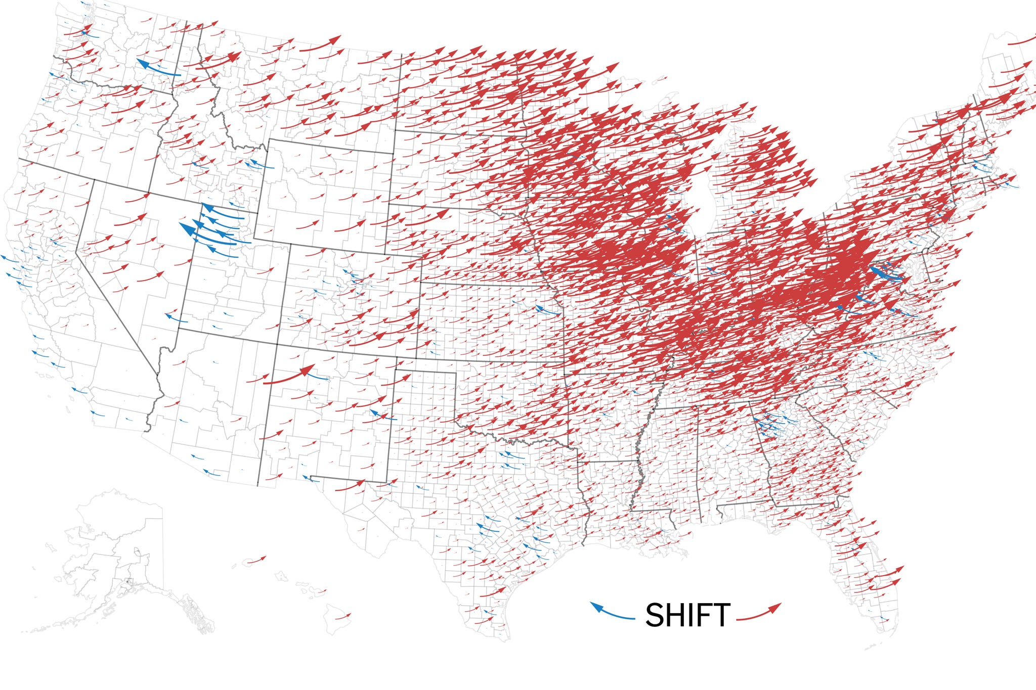 But those policies don’t mix. You can’t claim to help the working class by raising the minimum wage while simultaneously facilitating the importation of an entire group of subjugated second class citizens explicitly to work for less than the very same minimum wage you’re trying to raise. It’s nonsensical, and the folks at the butt end of the nonsense are American Labor. So eventually they revolted, left the Democrats permanently, and the election maps did this: