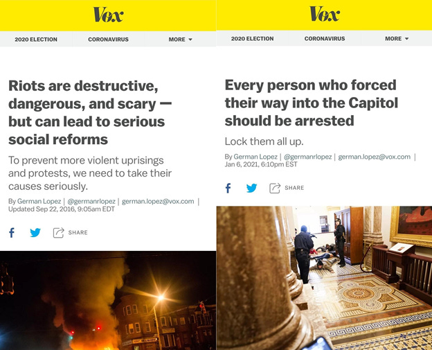 The world’s most obvious and predictable protest was going to happen no matter who won. Because Biden won, it was over "election fraud," but if Trump won it was going to happen over "election interference" after a month-long media tirade about post office problems or whatever. And both protests would look about the same, with about the same behaviors, and about the same amount of justification in "reality." Yet the reaction to it from the left would be opposite, and the reaction to it from the right would be opposite, if the participants flipped.