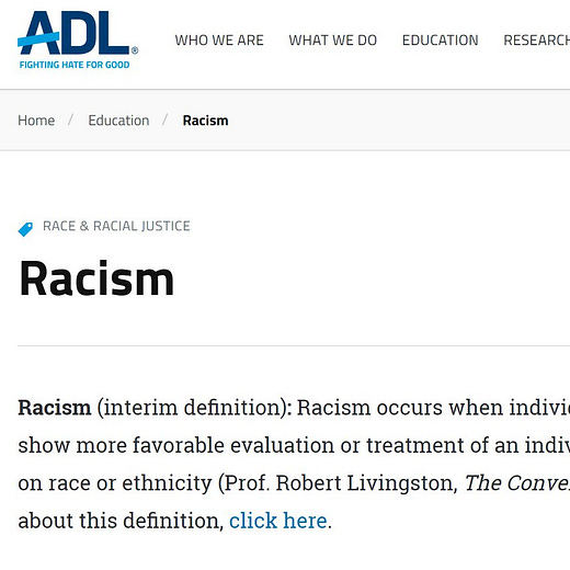 The racism discussion in the USA is torturously confusing because we have five very different meanings for the same word, not everyone knows the five different meanings, and sometimes bad faith actors hot-swap these definitions in the middle of discussions without letting their opposite interlocutor know they’ve done the swap.