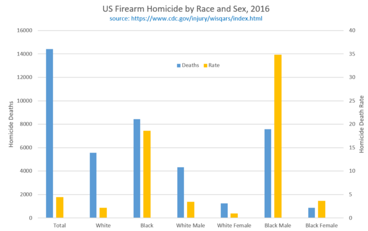 In my first story on Medium, we discuss some of the ways in which left of center media sources warp statistics to support the “we have a gun problem” and the “more guns = more homicide” narratives, largely by conflating suicide and homicide into one all-encompassing number, while not making that conflation clear. In the second story, we deliberate on the constituent elements of this “gun deaths” number, which is actually dominated by male suicides, and we discuss easily implementable ameliorations to that very real problem. Go read those articles first if you have the time. Here, we’re going to peel apart the gun homicide numbers as best as we can, to examine those.
