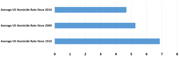 I’ll say that again, to be extremely clear. Our current homicide rate is historically low. The lowest in my lifetime, and odds are it’s the lowest in yours.