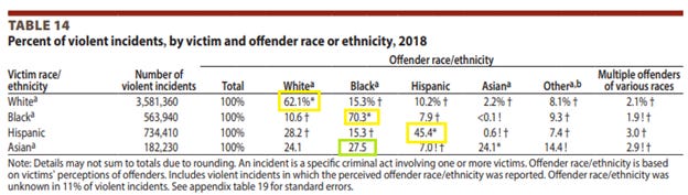 Attacks against Asians are on the rise in the United States, and I’m sure a nonzero number of these at the beginning of 2020 were attributable to White House rhetoric. But on net this problem is highly likely to be multivariate. Within the USA, violence victimization for every racial category is dominated by perpetrators of the same racial category, with one exception. Asians.