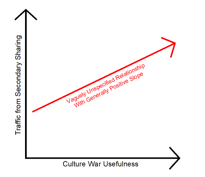 I won’t bore you with details. The traffic the other articles received varied widely, and came from very different sources. No more Furries though. The best ones got almost no traffic at all. As I explored this, I landed on one conclusion. The more useful the article was for people currently in a culture war argument, the more secondary traffic it got, particularly from Facebook.