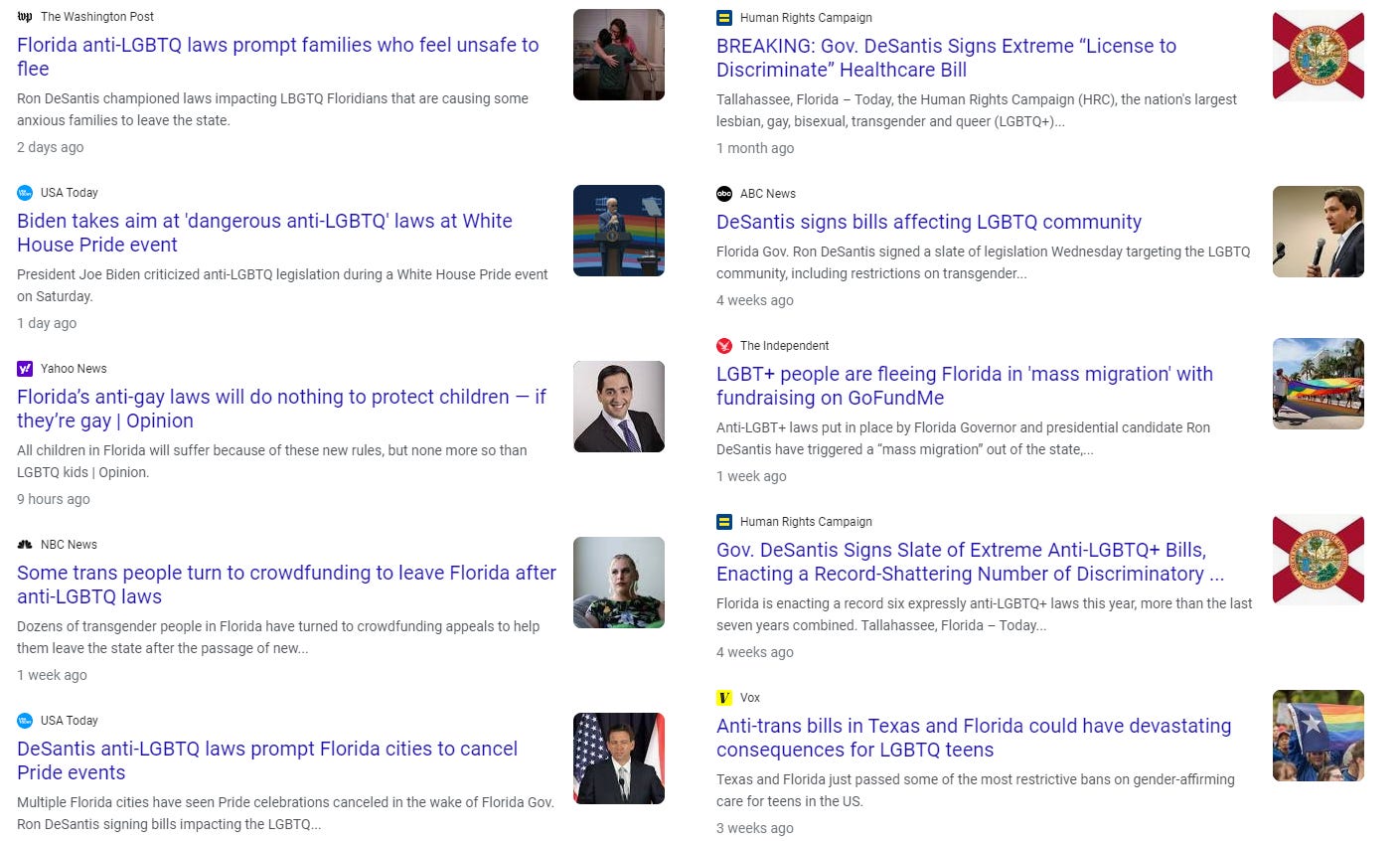A veritable wall of freakoutery currently surrounds the State of Florida regarding several of their new laws related to LGBT issues, but when you actually read the text of modern media articles about them, they provide as little information as possible about what the laws would actually do, and devote maximal effort to driving their readers into a mouth frothing frenzy. I thought it might be helpful to look at each of the actual Florida laws, read the words in them, and explain what they actually do.